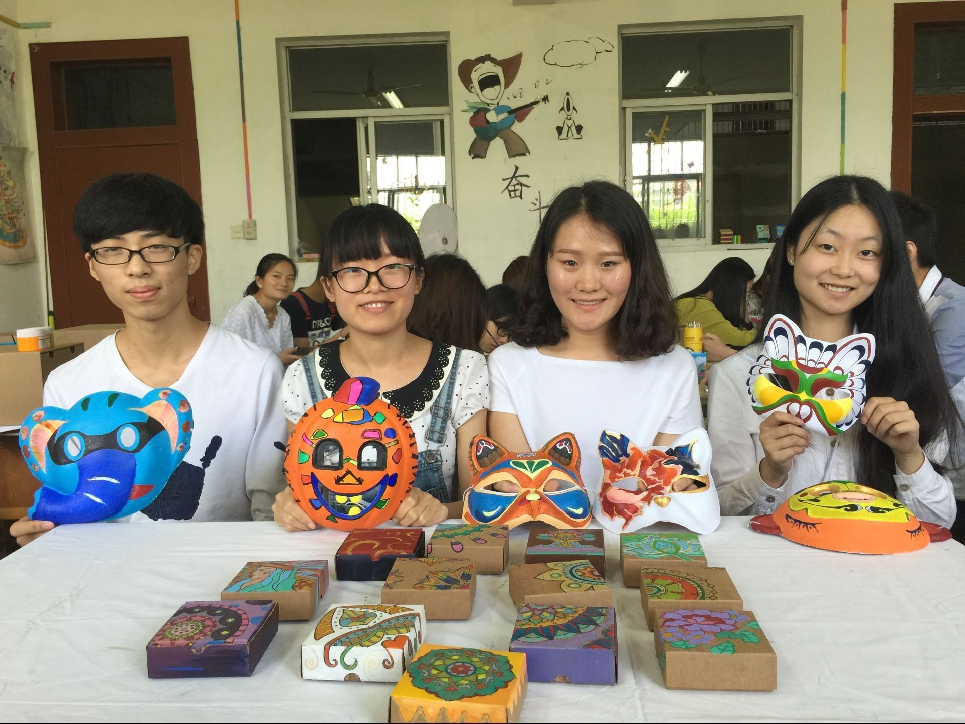 为了贯彻学校改革课堂教学、加强实践环节、强化学生动手能力的指导思想,视觉传达设计专业教师谢静针对《装饰与图案》课程特点,设置了课堂作业产品化、创意化的课程目标,指导15级视觉传达设计1班全体同学把作业变成作品,把创意变成产品,同时在辅导员杨帆老师的协助下,组织了一场别开生面的义卖会,把课堂教学与社会实践有效的结合了起来。