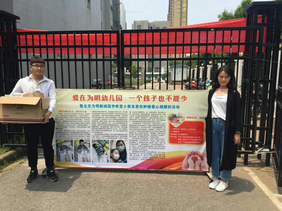 5月13日早上,上午7.20分,辅导员杨帆老师、班长王君慧、生活委员康宇,便到了位于高新四路的为明幼儿园,带着艺术学院15级视觉传达一班全体同学制作的装饰绘画作品,通过在为明幼儿园国际日举办的义卖活动,为一名的恶性肿瘤的孩子捐赠爱心。通过大家的不懈努力,十一点半左右,同学们的作品就被抢购一空,义卖结束后,班级向患儿捐款,并合影留念。本次义卖圆满成功,虽然大家喊的嗓子有些哑,但是想到所得的成果大家心里却是很开心。
