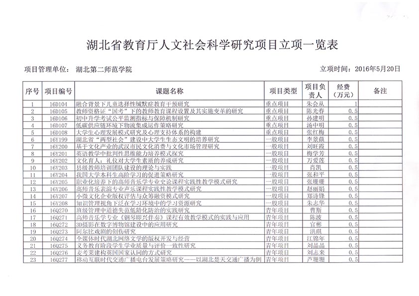 艺术学院获批5项湖北省教育厅人文社科项目立项