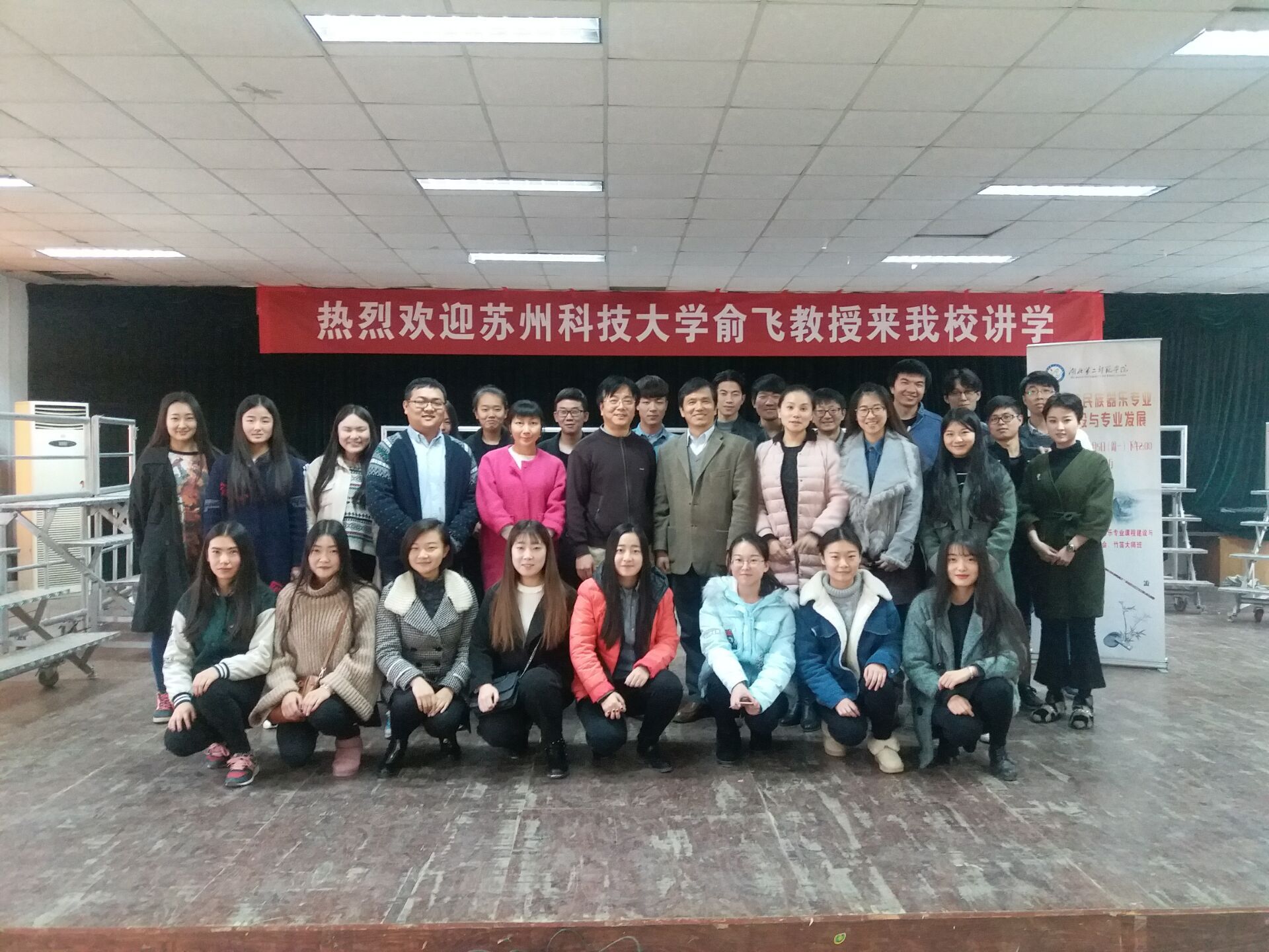 本网讯(通讯员 徐宇雯 韩子瑜)11月5日下午2点,苏州科技大学音乐学院教授、硕士生导师、著名笛箫演奏家、指挥家俞飞来我校讲学,讲座主题为普通高校民族器乐专业课程建设与专业发展,我校教务处副处长王培喜、艺术学院副院长陈顺桥、音乐系主任刘畅出席了讲座,音乐系民乐专业全体师生来到现场聆听。