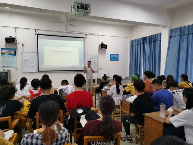 2019年9月10日星期二中午,数字媒体艺术与科技系系主任付丹老师为19级动画专业新生介绍了我校动画专业在“强基础技能训练,重岗位细分培养”的教学指导思想下,结合新时代的社会市场需求,动画专业专心培养动画设计、游戏设计、漫画设计等方向的应用型TA人才的教学特色。