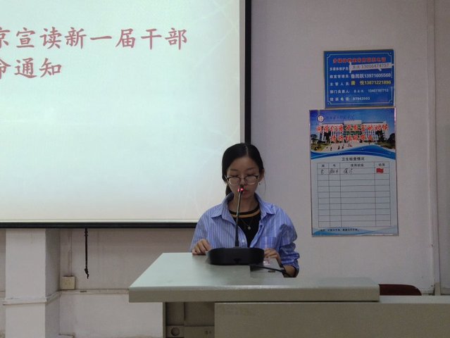 首先,在主持人简短的介绍后,分团委副书记骆夏君老师宣布了本届分团委学生会干部的认命名单。