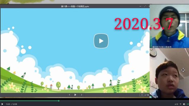 17级音乐学1班陈金锋同学在此次志愿教学活动中,对进行了声乐和乐理辅导,陈金锋同学表示自己很开心能够在这个非常时期用这种‘特殊’的方式去帮助那些想学习音乐的小朋友,把自己所学到的专业知识传递给他们,既丰富了自己的生活又锻炼了自己的教学能力。