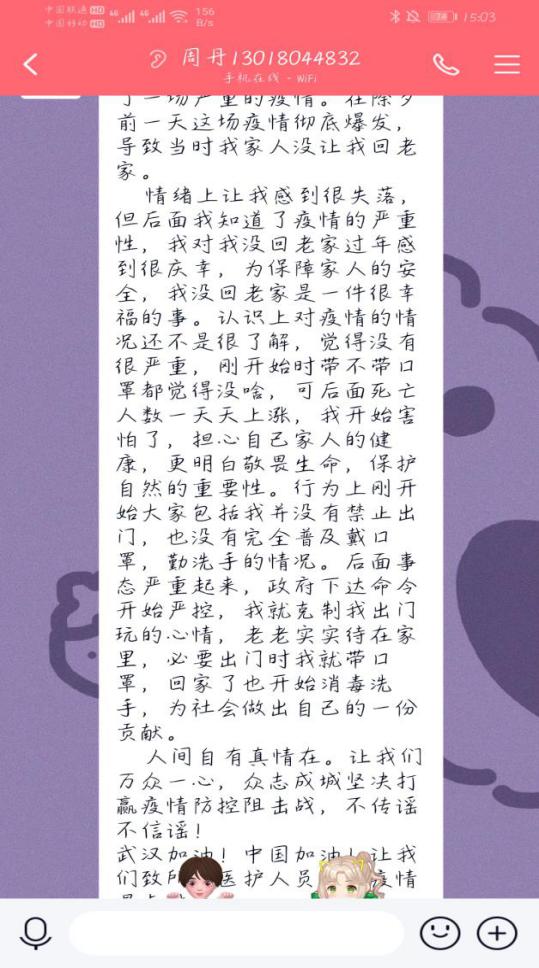 (图1-6为同学们积极发表自己在疫情期间感想的截图)