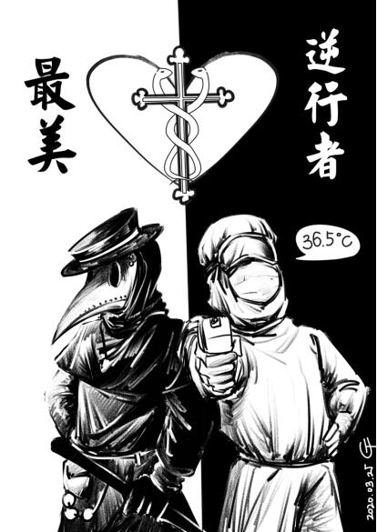 (图15-16为同学在金波院长的号召下为抗击疫情设计的纪念章草图)