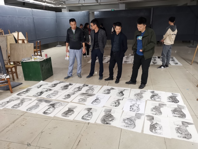 2020年10月27日下午数媒系系主任付丹老师邀请艺术学院赵文副院长、美术系张虎副主任及数媒系副主任叶凡老师一同在艺术学院展厅对2020级动画专业新生素描课阶段性作业进行了集体评议。在听取任课老师介绍课程目标及如何完成目标的课程教学设计方法后大家根据作品一起讨论了这届学生的专业基础技能水平,分析了形成的原因,提出了针对性的解决建议。本次教学活动也是对动画专业2020级本科新生专业复测工作的落实。