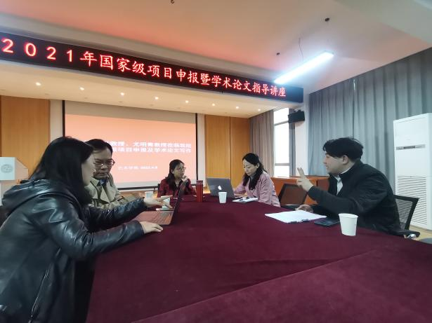 本网讯(通讯员蒋芳)4月8日14:30,艺术学院2021年国家级项目申报暨学术论文指导讲座在9210举办。楚天学者暨人文社科基地首席专家李平教授、中南财经政法大学尤明青教受邀莅临讲座。讲座由金波院长主持,学院领导及青年教师、博士、副高以上职称教师参加。
