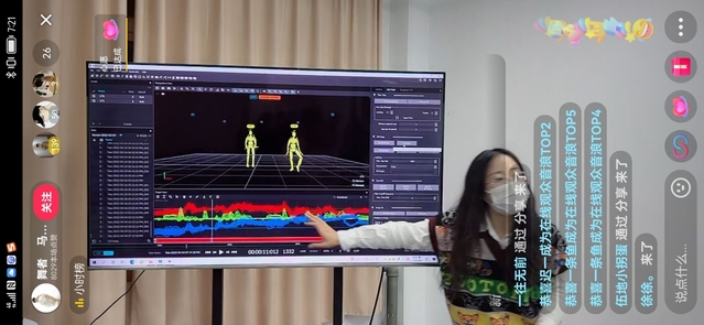 4月4号,王力、付丹老师组织动画专业信息化美育团队成员,姜梦雨老师、陈振才、胡祖祥等同学,与舞蹈专业马玉江老师及学生舞蹈团队,在动作捕捉实训室进行了直播前的设备调试,舞蹈编排、软件程序设定等准备工作。