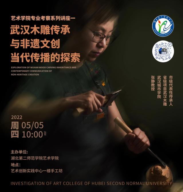 2022年5月2号上午十点,优秀校友张静教授做客母校,在艺术创新实践中心进行线下交流、线上直播非遗讲座活动,讲座围绕武汉非遗木雕传承和非遗文创当代传播探索展开,金波院长和学院老师们到达现场观看讲座。