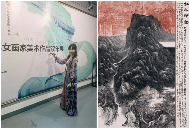 陈郢副教授的《红之印记》(240×160cm,纸本水墨)、马彩霞的《伫2》(80×180cm,纸本工笔)参展“她力量——湖北省首届高校青年女画家美术作品双年展”,呈现了学院教师的创作能力、专业水平和业界影响力,激发了广大青年教师的创作潜能,激励了美术学专业学子的创作热情,促进了美术学专业发展。