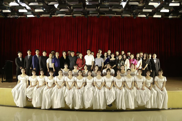 本网讯(通讯员寇琰)5月26日傍晚,漫笛合唱团在新图书馆二号报告厅举办“和光同尘,韶华不负”专场期末汇报音乐会。校党委常委、纪委书记刘昕,校党委常委、副校长夏力,湖北第二师范学院校团委书记文敏,艺术学院全体领导班子,音乐系众教师等出席音乐会,音乐系罗娜教授主持音乐会。本场专场音乐会由漫笛合唱团指导老师,音乐系系主任韦也纳老师、娄冬老师指挥,漫笛合唱团团长姜瑾怡同学任钢琴艺术指导,特邀嘉宾音乐系器乐教研室钢琴教师寇琰、萨克斯管教师杜寒枫。