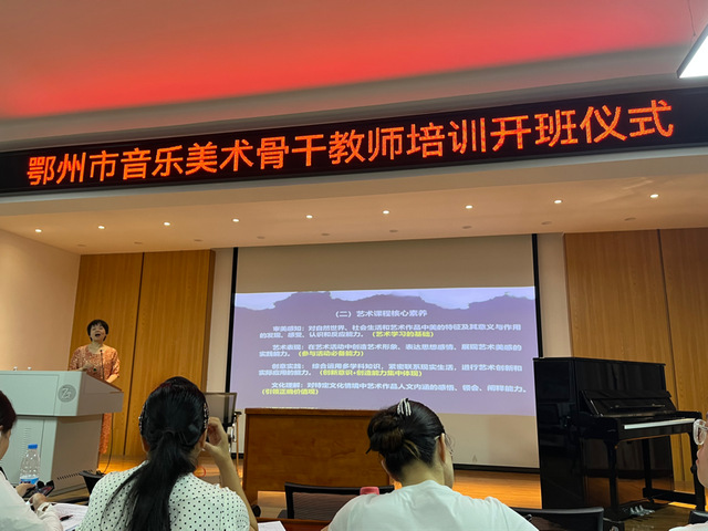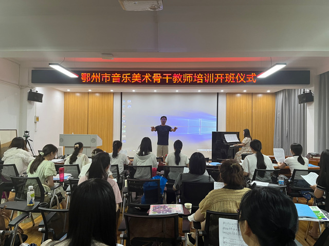 这种多形式、多样化培训,充电量,补短板,为新学期教育教学工作顺利开展筑牢基础。课程学习期间,来自鄂州高中的音乐教师袁凤枝,台前幕后辛勤忙碌着,为此次音乐教师培训做了大量工作:组织队员排练、构思节目内容、服装设计与搭配等各项工作都有她辛勤的付出,受到培训组及全体学员一致好评。鄂州市教育局抓住暑期教师培训“黄金时期”,针对全市中小学音美艺术教师进行多形式、多样化培训,充电量,补短板,为新学期教育教学工作顺利开展筑牢基础。作为鄂州音乐骨干教师,我们对未来充满信心和期待,定将培训所得与教学实际相结合,做到学以致用,学用相长,不负人民重托,努力争做新时代人民好教师!
