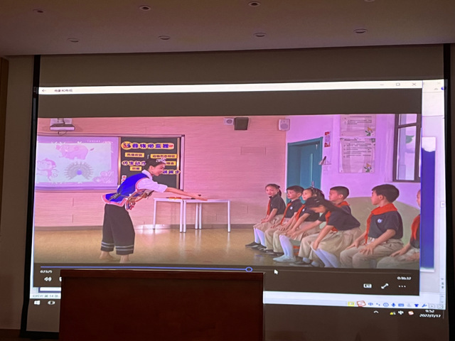 第三个主题为“实练实操”。胡老师向大家分享了真实课堂的案例《非物质文化遗产——烟盒舞》。她认为传承中华优秀传统音乐有三个途径:课堂研究、校园普及、音乐生活。胡老师从传承传统音乐的角度出发,提出要凝聚多门学科,“一体化”合力育人,振兴民族精神,传承优秀民族文化,为老师们提供了让中国传统文化在音乐课堂中传承、发展的新思路。