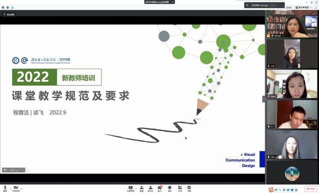 本网讯(通讯员谈飞)2022年9月1日晚上8点,视觉传达设计专业通过线上方式开展了对新进教师的教学培训工作,程蓉洁主任主持会议,程蓉洁主任对课堂教学的准备及要求做出细致讲解,谈飞副主任就教学档案的规范及要求做出具体指导。视觉传达设计专业安排副高职称以上教师一对一指导新进教师,帮助他们更快在教学科研上快速成长,更快的转换角色,更出色完成各项工作。