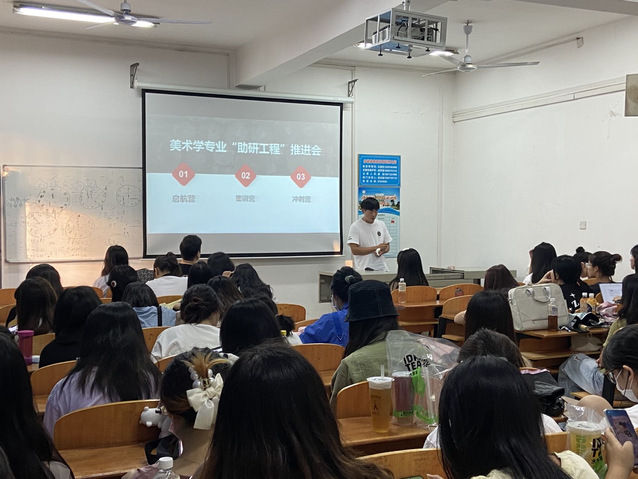 本网讯(通讯员 吴科、王超)为更好地调动学生考研积极性,正确把握考研形势,明确考研目标与方向,做好考研规划,9月14日美术学系在艺术楼多媒体3教室开展助研工程推进会。美术学系主任、专任教师、全体19级美术学同学出席了此次大会,会议由雷宏亮老师主持。