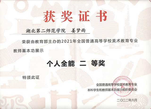 数媒系姜梦雨老师,在教育部主办的美术教师基本功展示中荣获个人全能二等奖
