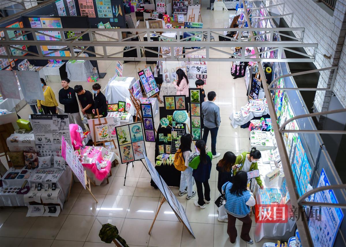 视频剪辑 刘中灿4月12日,湖北第二师范学院2019级视觉传达设计专业学生的毕业设计展,在该校艺术学院展厅隆重开幕,帆布袋、扇子、笔记本、书签、玩偶、水杯、胶带、纸伞等设计作品琳琅满目,整个展厅就像一个热闹的创意商品大超市,学生们的创意设计作品题材涵盖艺术与生活相结合的方方面面,吸引了众多师生前来围观。