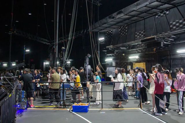 紧接着学子们在工作人员的带领下来到剧场的5楼马道区域,从技术、设备方面对大家进行了讲解与展示。演员演出时所需装备的防护设施、威亚,以及12辆价值不菲的小车。剧场的小车在演出中起到了关键作用,负责运输演员及演出所需物品。