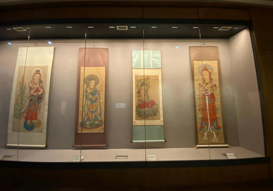 四川博物院收藏了大量张大千先生画作,尤其是临摹敦煌壁画。张大千临摹敦煌壁画 200余幅,四川博物院收藏了183幅。张大千先生在敦煌时间有限,绝大部分是未完稿,他将临摹的画作带回四川后,先后折叠装箱辗转存放于昭觉寺、沙河村等地。1963年,张大千先生家人将该批文物正式捐赠四川博物院收藏至今。