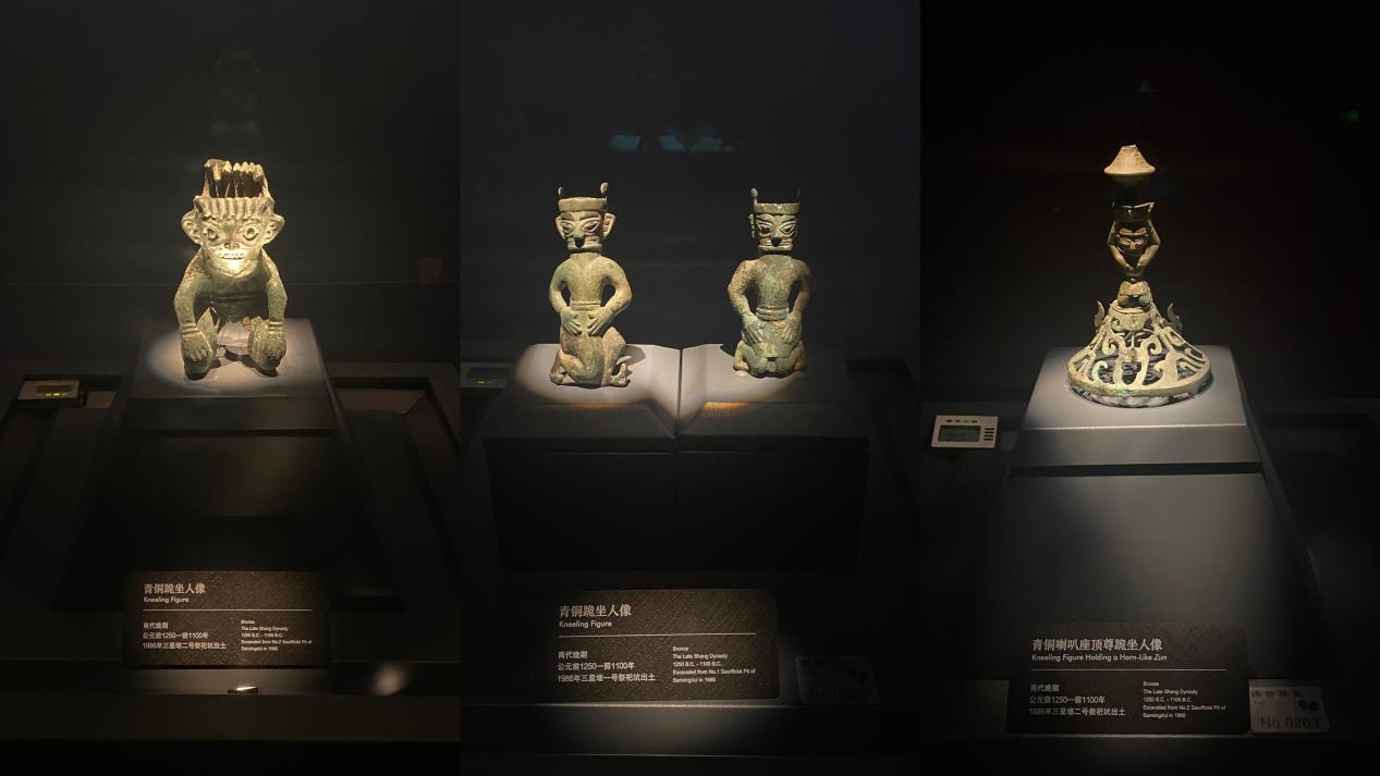 (图为三星堆博物馆内各式青铜小像)
