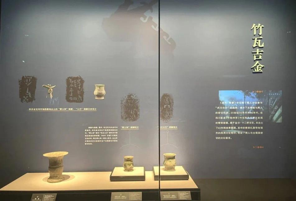 《尚书·牧誓》中记载了蜀人出征参与“武王伐纣”的战争,揭示了古蜀国与周人的密切往来。20世纪50年代和80年代,在四川彭县(今彭州市)竹瓦街先后两次发现的青铜窖藏,属于金沙·十二桥文化,共出土了40件精美青铜器,其中的青铜礼器带有强烈的西周文化烙印,见证了周人与古蜀国密切的文化联系。