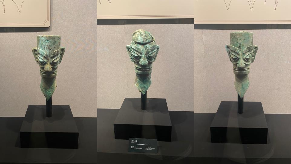 这是专属青铜馆,三星堆青铜器高超的铸造工艺和独特的造型艺术,凝聚了古蜀先民的智慧结晶。青铜人头像,有着有趣可爱的表情,有的超级呆萌,让我们对于古蜀国的文化充满了好奇。