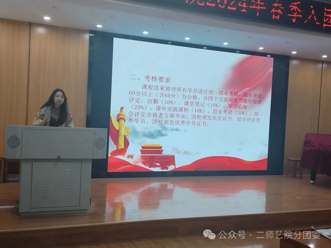 2024年3月28日中午12:50,艺术学院团委在9210开展了2024年上半年入团积极分子团课培训,此次团课培训由学院团委办公室章良怡主持,并邀请学院团委书记聂刚刚老师授课。聂老师以“从党史中汲取智慧和力量”为主题,为同学们带来了一堂精彩的讲座。