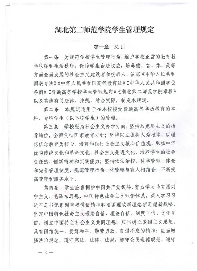 湖北第二师范学院学生管理规定