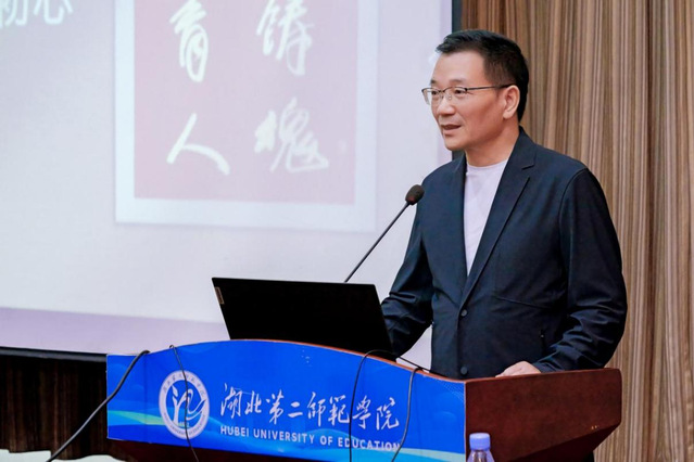 (通讯员寇琰)2025年10月13日星期一下午14:00,“新时代·新美育·新使命——美育赋能教育高质量发展2025美育实践研究高峰论坛”在湖北第二师范学院一号会议室隆重举行。教育部高校美育教学指导委员会副主任委员郭声健教授做了名为“从教书到育人——让艺术教育回归美育初心”的主题报告。郭教授指出,湖北第二师范学院坚持举办美育实践研究高峰论坛,已经成为学校美育界学术活动的标杆。